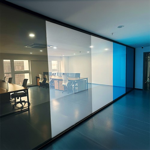 aodoth smart film (glass) is widely used in office partitions, curtain wall glass, medical places, museums, shopping malls and other scenes. With one-click switching between transparent (power-on) and opaque (power-off),the dual needs of open vision and privacy protection can be meet. The product has excellent weather resistance and long service life.